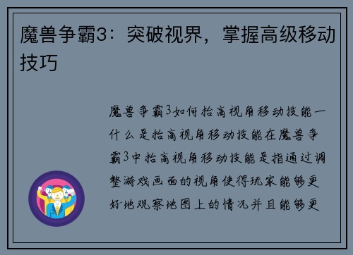 魔兽世界如何选择打法和技能栏 在魔兽世界中,选择合适的打法和技能栏是玩家们提高战斗能力和享受游戏乐趣的关键。不同的职业和角色在游戏中有着各自独特的技能和特点,因此玩家需要根据自己的职业和游戏风格来进行选择。下面将从随机的8个方面对魔兽世界的打法和技能栏进行详细阐述。ag·...